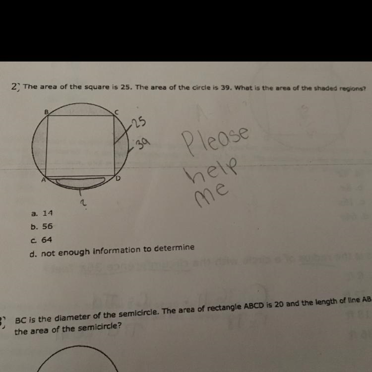 For example, if you take out the square from the circle, that leaves the shaded areas.