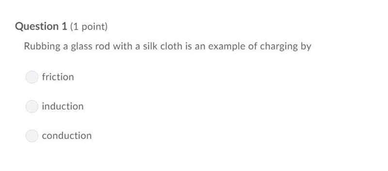 Charging by friction is also known as rubbing. Here, a glass rod comes into contact with the electron pool of silk and it looses electrons to the rod. Other examples are pencil and paper, fur and glass rod etc.