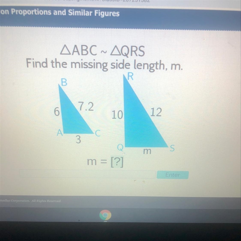 Thus, side m is 1 2/3 times 3, or 5/3 times 3, or just 5.