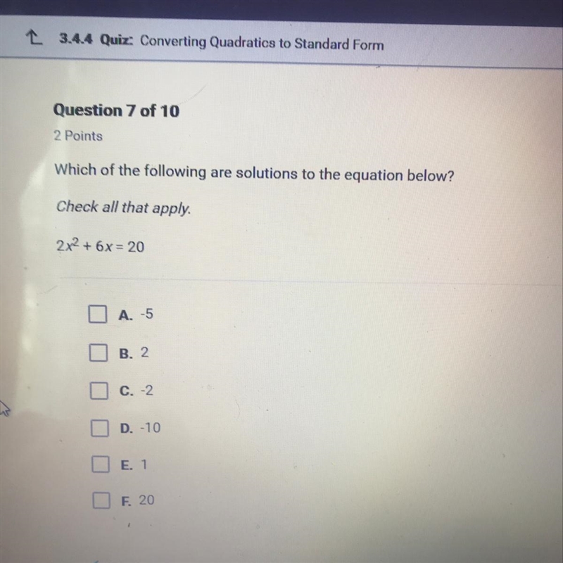 PLEASE HELP ME!!!!!!!! 2x^2+6x=20