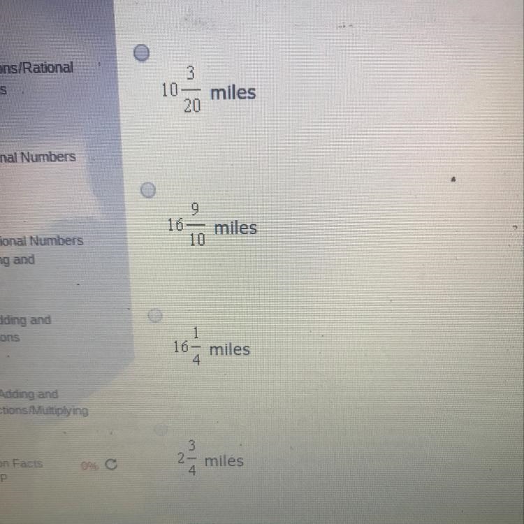 10. Jaime is running a marathon, which is a 26 2/5 Mile Race. At 6 3/4 miles from the start, she passes Friends cheering on her. After she passes a water stop 9 1/2 miles farther along the route, How Far From The Finish Line is Jaime?