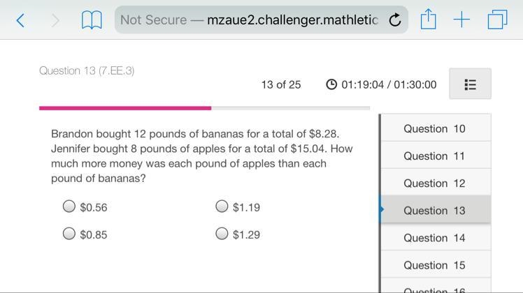 Answer: The correct answer would be C. $1.19 or B, depending on how you look at it.