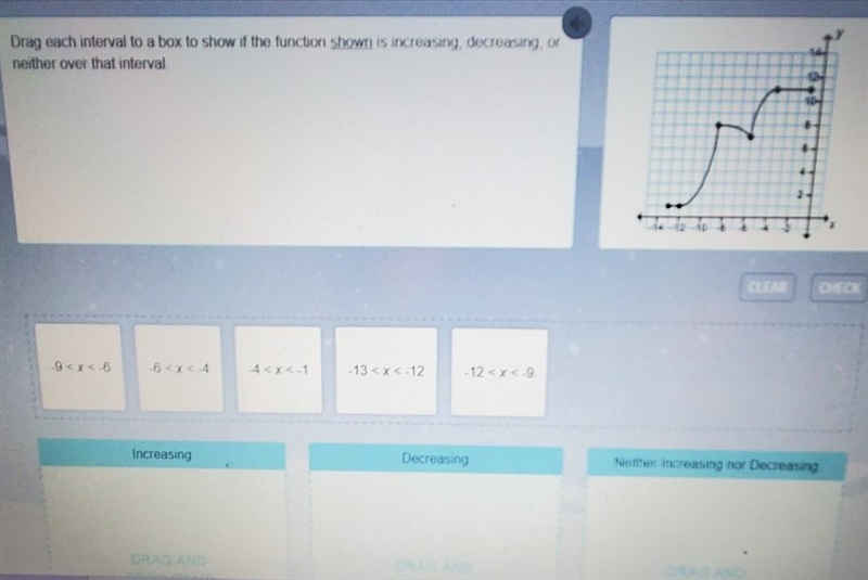 Note that the value of y is always equal in this interval, therefore the function is not increasing or decreasing.