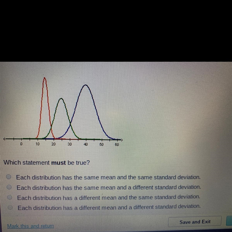 4th option is correct; Each distribution has a different mean and a different standard deviation