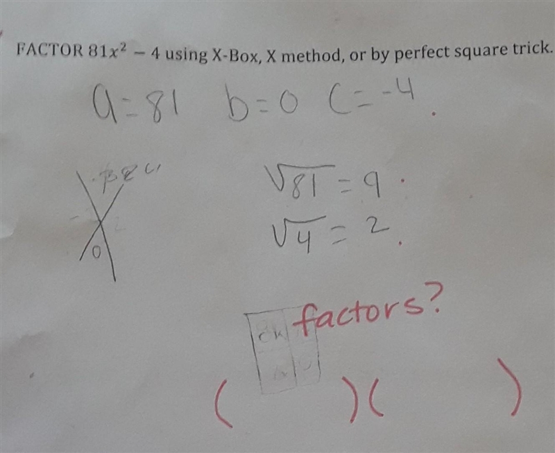 81x² - 4 = (9x +2)(9x -2)