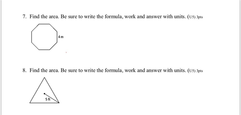 7. the formula for octagon is a=2(1+radical2)s^2