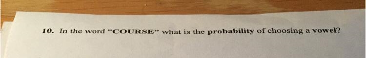 In the word "COURSE” what is the probability of choosing a vowel?