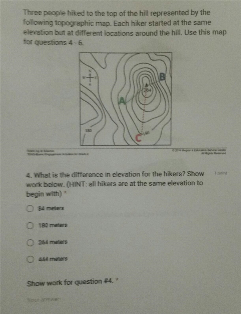 So the difference in elevation for the hikers is: 264-180=84 units.