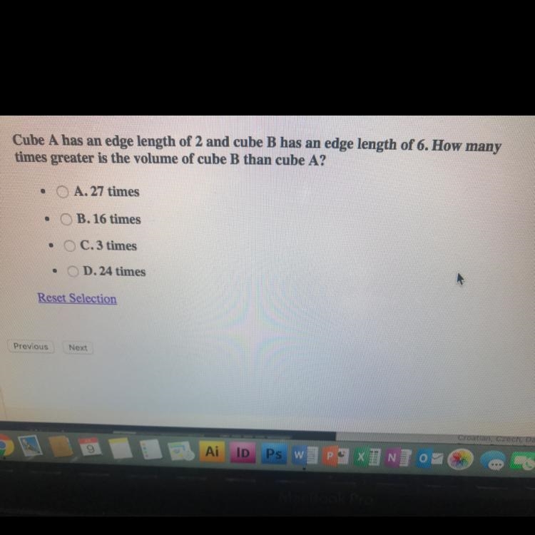 If cube a has an edge length of 2 and cube b has an edge length of 6,the volume of cube b than cube a is 3 times greater.
