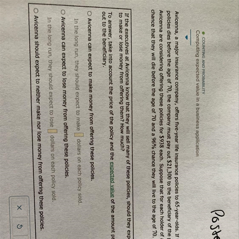 There's a 4% chance the holder dies before 70. If this happens, the insurance company loses $21,300.