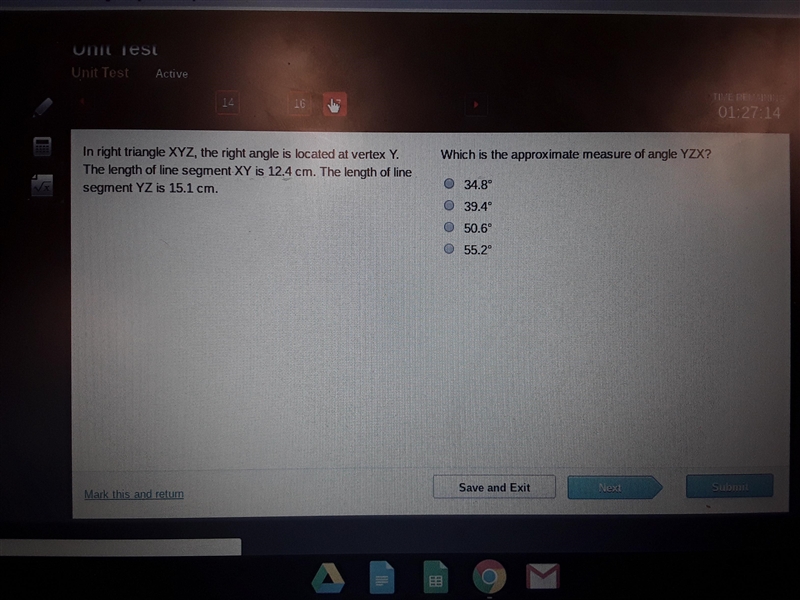 ∠YZX = (12.4 / 15.1 ) ≈ 55.2°