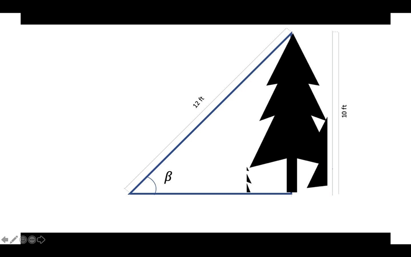 We need to find the angle between the cable and the ground, and in the figure it is β , if we have the length of the cable and the height of the tree we can say that :