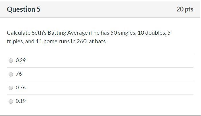 Correct Answers only please! Calculate Seth’s Batting Average if he has 50 singles-example-1