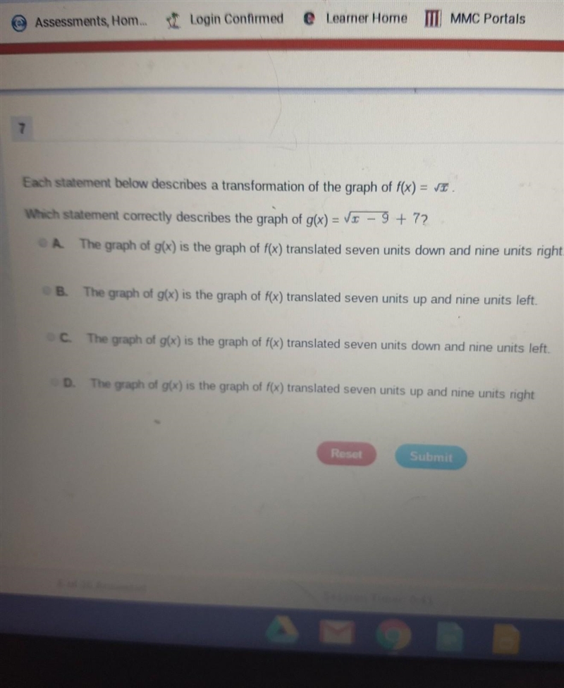 D. The graph of g(x) is the graph of f(x) translated seven units up and nine units right.