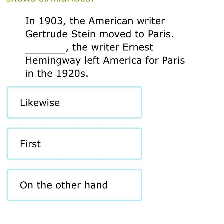 Likewise, to me, makes the most sense, because the passage implies that the two people end up in the same place which being Paris.
