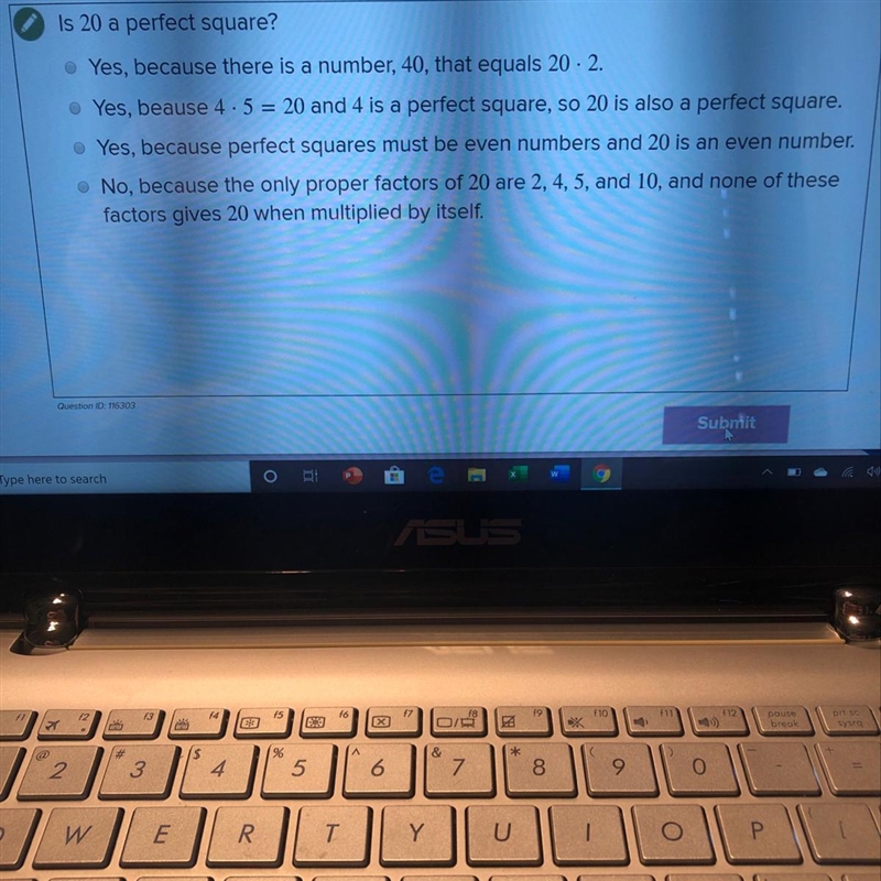 Is 20 a perfect sqaure