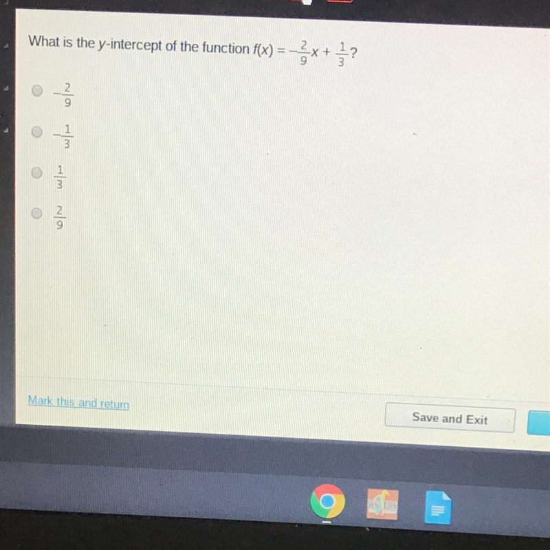 f(x) or y = (-2/9)x + (1/3)