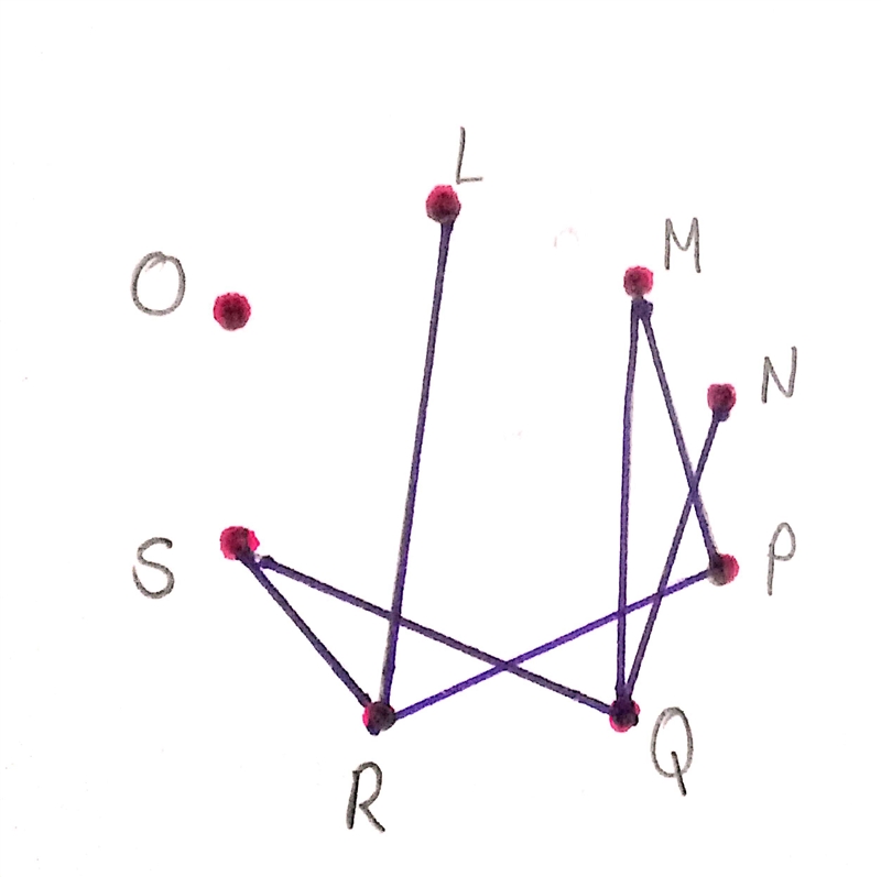 a) The edges that have P as a vertice are {M,P} and {P,R}.