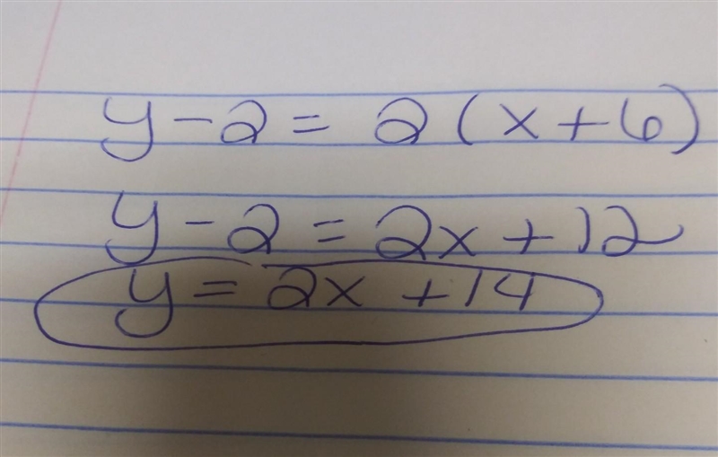 Which of the following is a point-slope equation of a line with the point (-6, 2) and a slope of 2