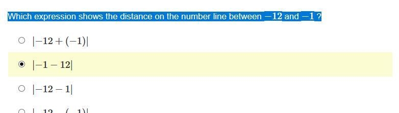 Distance between -12 and -1