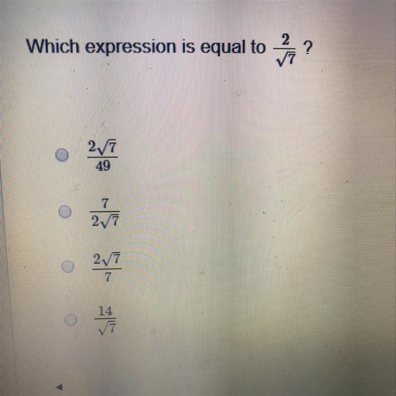 Which expression is equal to 2/sqrt7