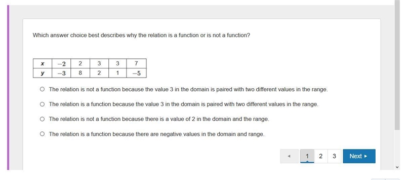 because value 3 is paired with two different values in the range. Remember X can't have two Ys or it isn't a function.