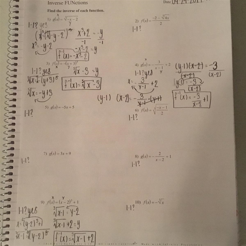 8) g^-1(x) = 2(x - 2)/(x - 1)
