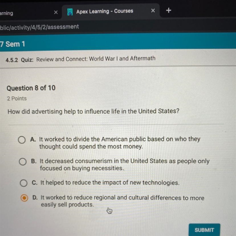 Answer: the correct answer is D. it worked to reduce regional and cultural differences to more easily sell products.