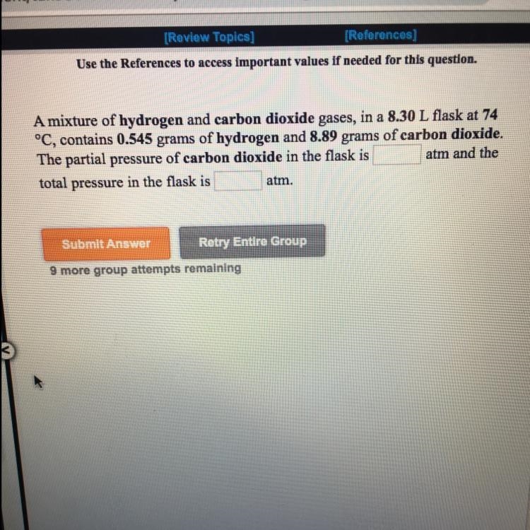 The partial pressure of carbon dioxide in the flask is 0,69 atm and the total pressure in the flask is 1,62 atm