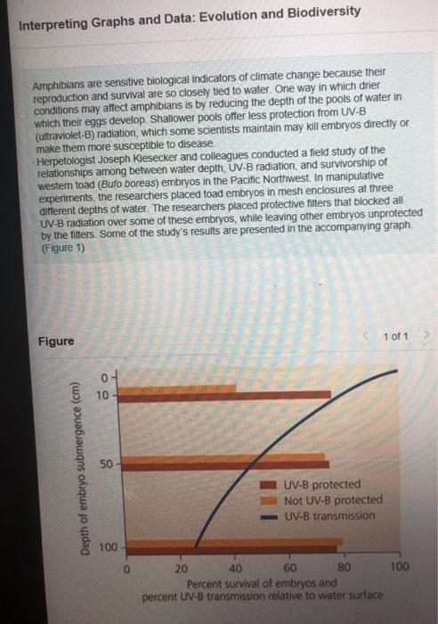 water depth had the biggest difference in survival rates for embryos with UV-B protection versus embryos without UV-B protection is 10 cm . the bar graph attached in the shows that the lengths of yellow and brown bars differ the most at 10 cm.