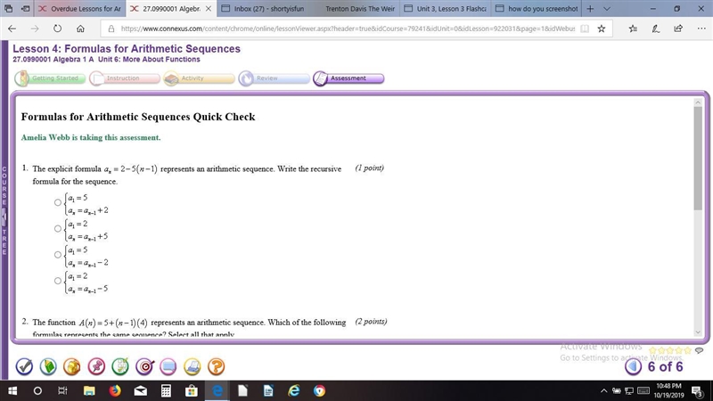 Therefore, a₁ = 2 and d = -5. So the recursive formula is: