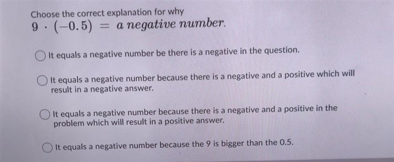 It equals a negative number because there's a negative and a positive which will result in a negative answer