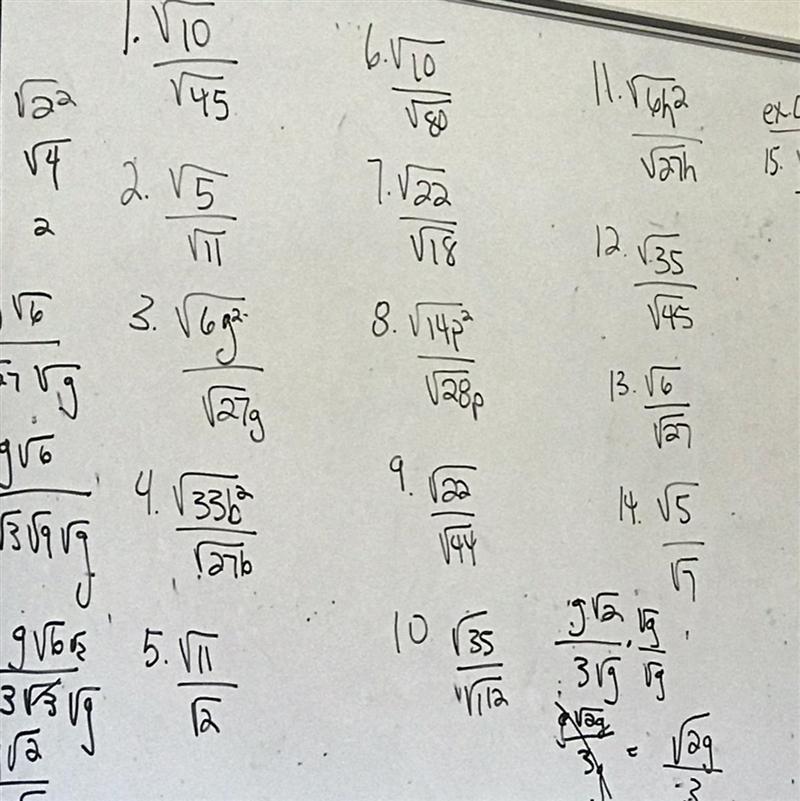 6) √10/√80 = √ ( 10/80) = √(1/8) = √1 / √2*2*2 = 1 /2√2