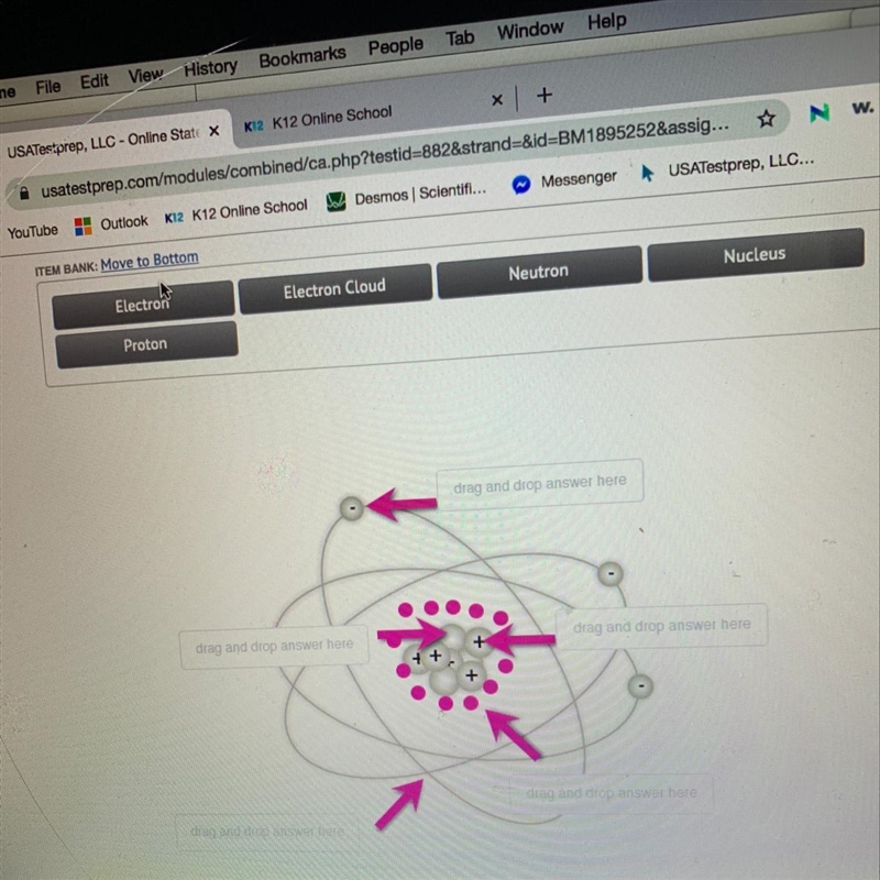 The box at the bottom most is the electron cloud while the box above the bottom most is nucleus