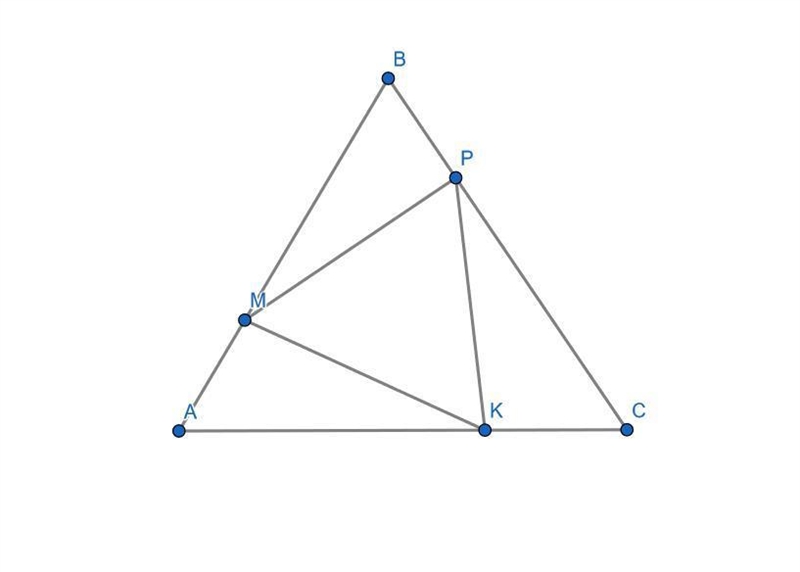 Points M, P, and K belong to AB , BC , and AC respectively and