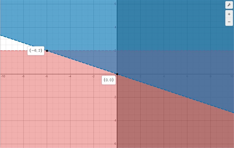 Answer: Graph the solution to the following system of inequalities: x>/ 0 y<2 x+ 3y > 0