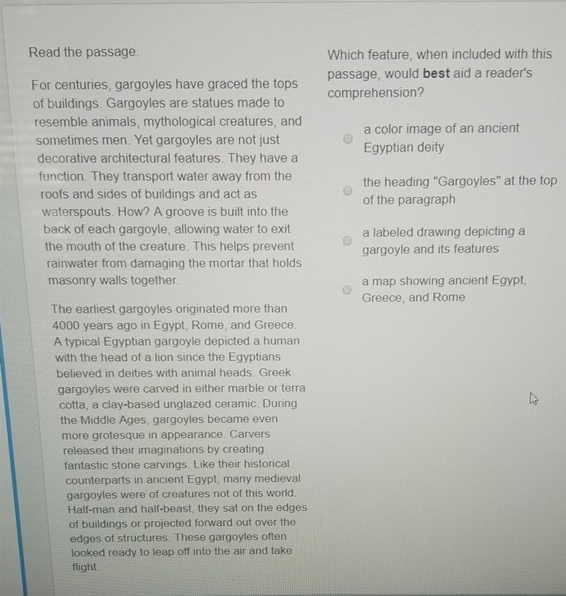 The third is maybe not as likley because the passage says different gargoyles from different times and from the number 3 anwser seems like it is only 1 type of gargoyles.