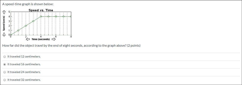 A = ½ (4 s − 0 s) (4 cm/s) + (8 s − 4 s) (4 cm/s)