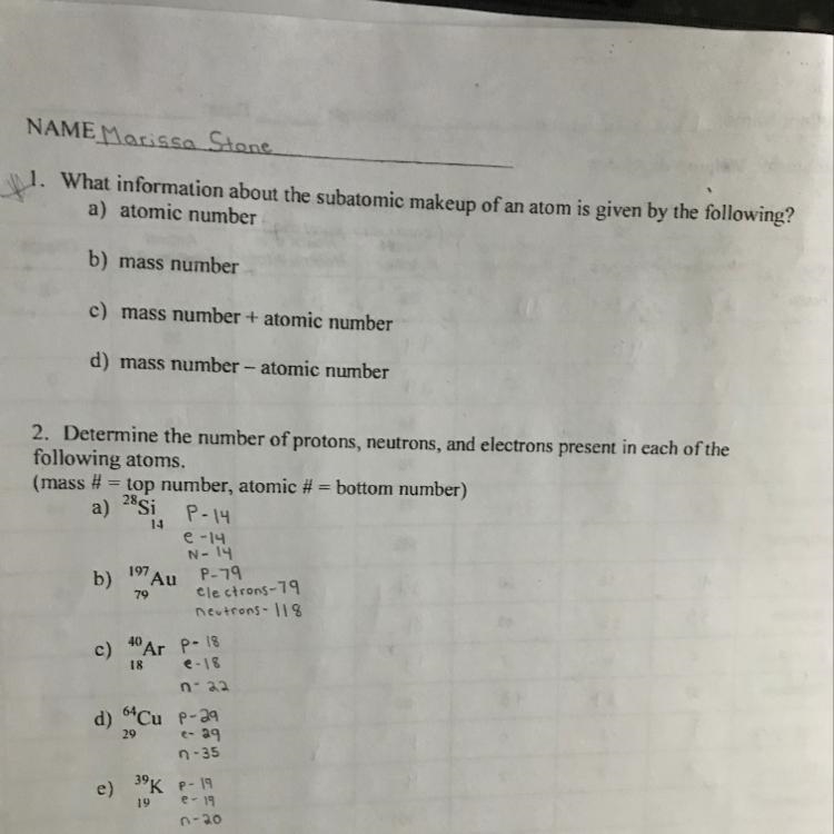 Mass + Atomic number. Sorry if I'm wrong I haven't been studying chem lately