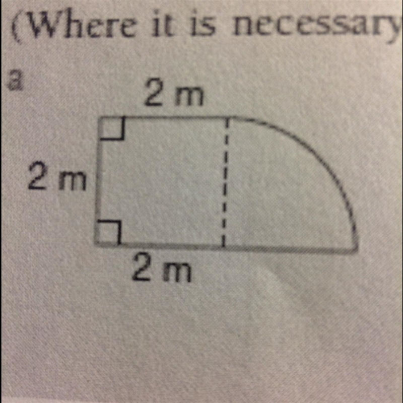 squared meters. The shape on the right is one quarter of a circle with radius 2, is its area is