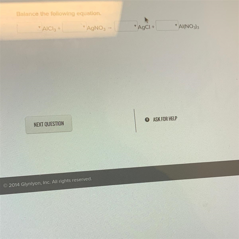 For example, Cl are not equal. The right side needs 3 times as many than it has in the skeleton. Multiply its compound by the coefficient 3.