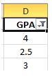 An excel file called “student_gpa” is opened. What does the funnel next to “GPA” indicate