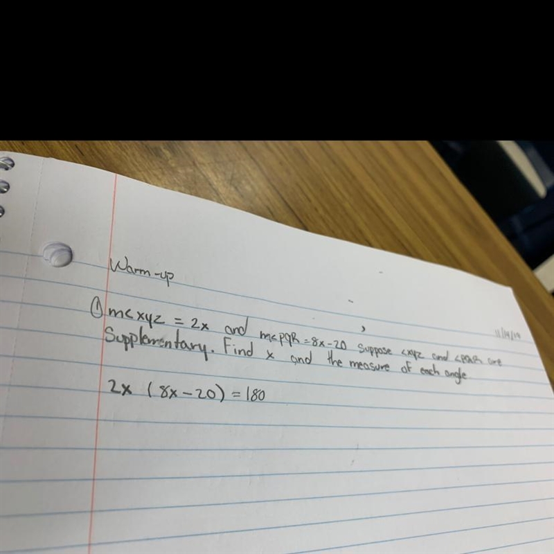 the first angle which is 2x will be 2(20) = 40 , and the second angle which is 8x - 20 will be 8(20) - 20 = 140