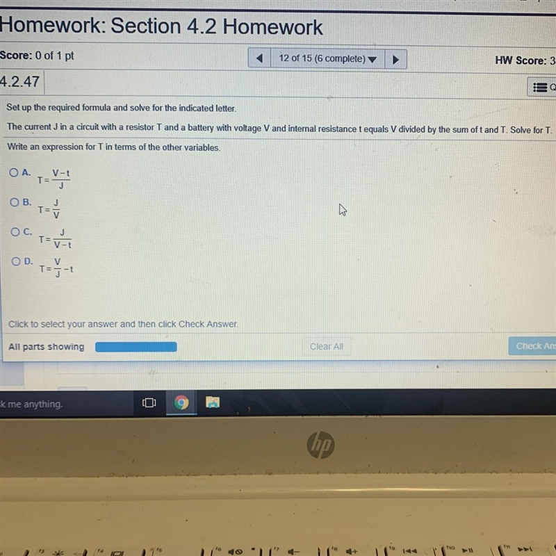 It is given that the current in the circuit is given by V divided by the sum of t and T.