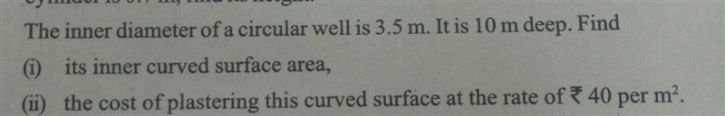 (1 ) Inner curved surface area of the well is 109.9 sq. meters.
