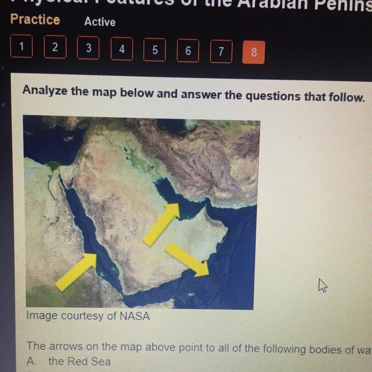 The arrows on the map above point to all of the following bodies of water expect-example-1