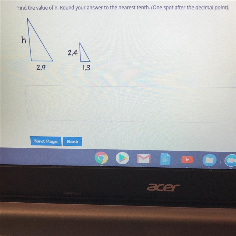 We can set up a ratio of each triangle separately and equate, cross multiply and solve for "h".