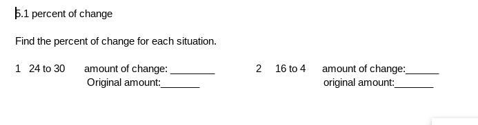 Percent \: of \: change = (amount \: of \: change)/(original \: amount) * 100\%