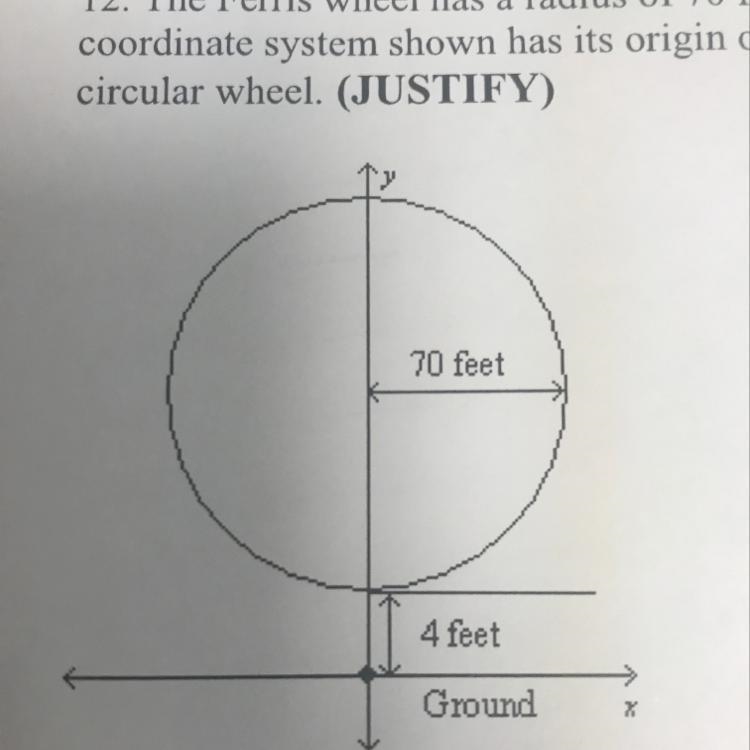 (4 feet above the ground is wheel and the radius of the wheel is 70 feet)