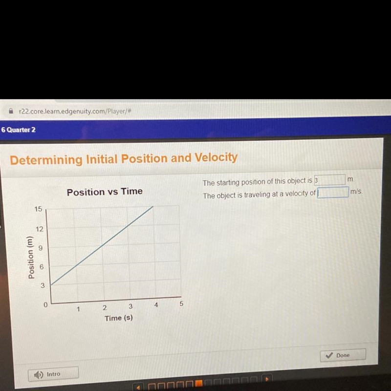 What is the object traveling at a velocity of?